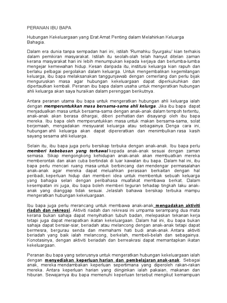 Contoh Karangan Peranan Ibu Bapa Membentuk Keluarga Bahagia